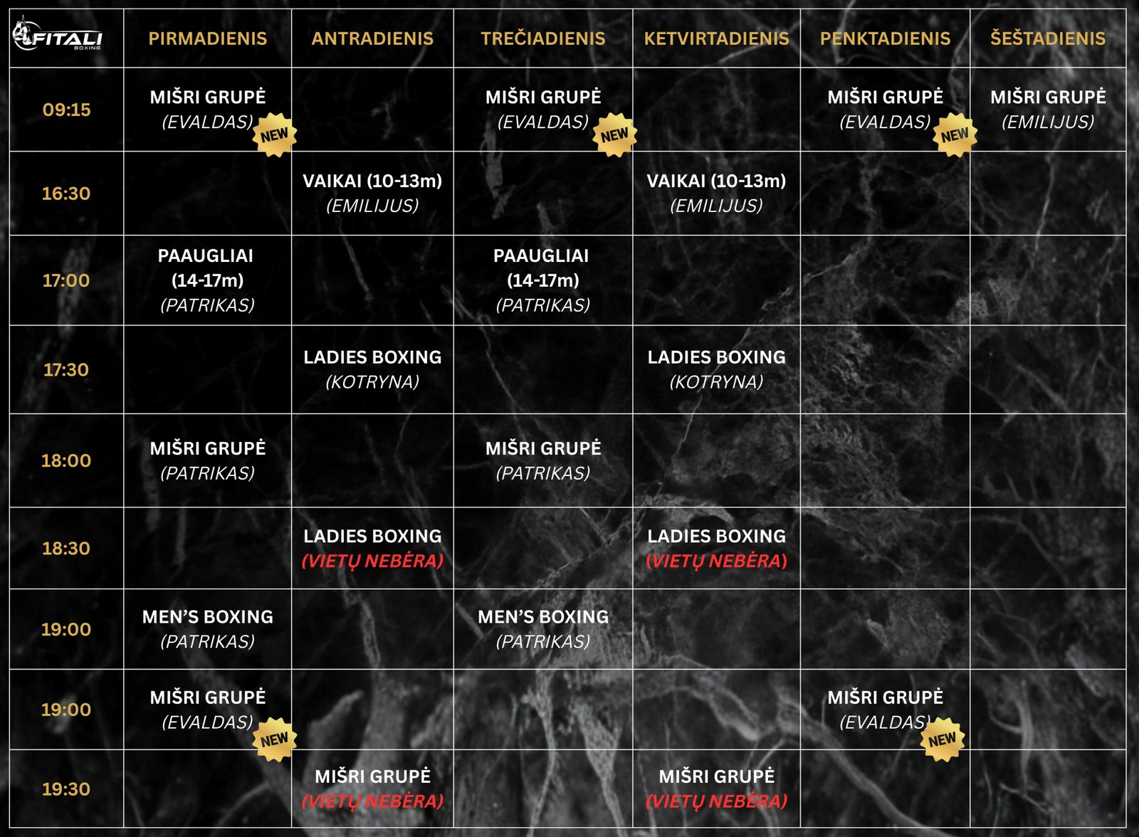 Grupinių treniruočių kaina: 60€/mėn, pasirinktoje grupėje du kartai per savaitę.
